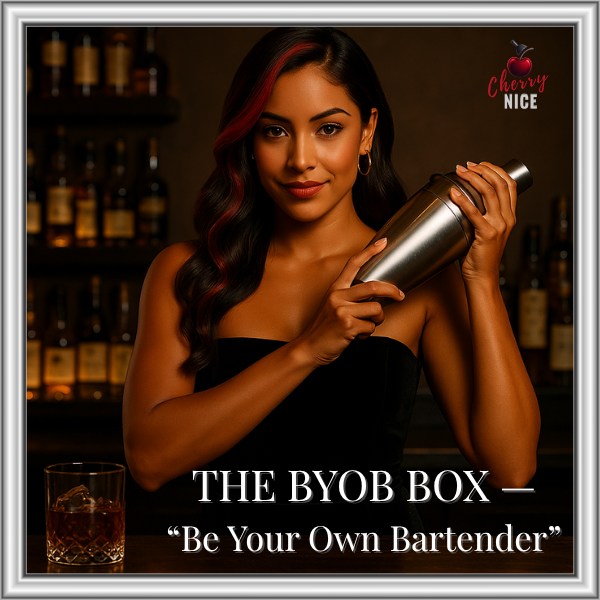 Every month, Cherry Nice herself curates a collection designed to build your confidence behind the bar β and beyond it. Whether you're hosting intimate gatherings, impressing a date, or simply elevating your solo evenings, the BYOB Box gives you everything you need to pour with intention.